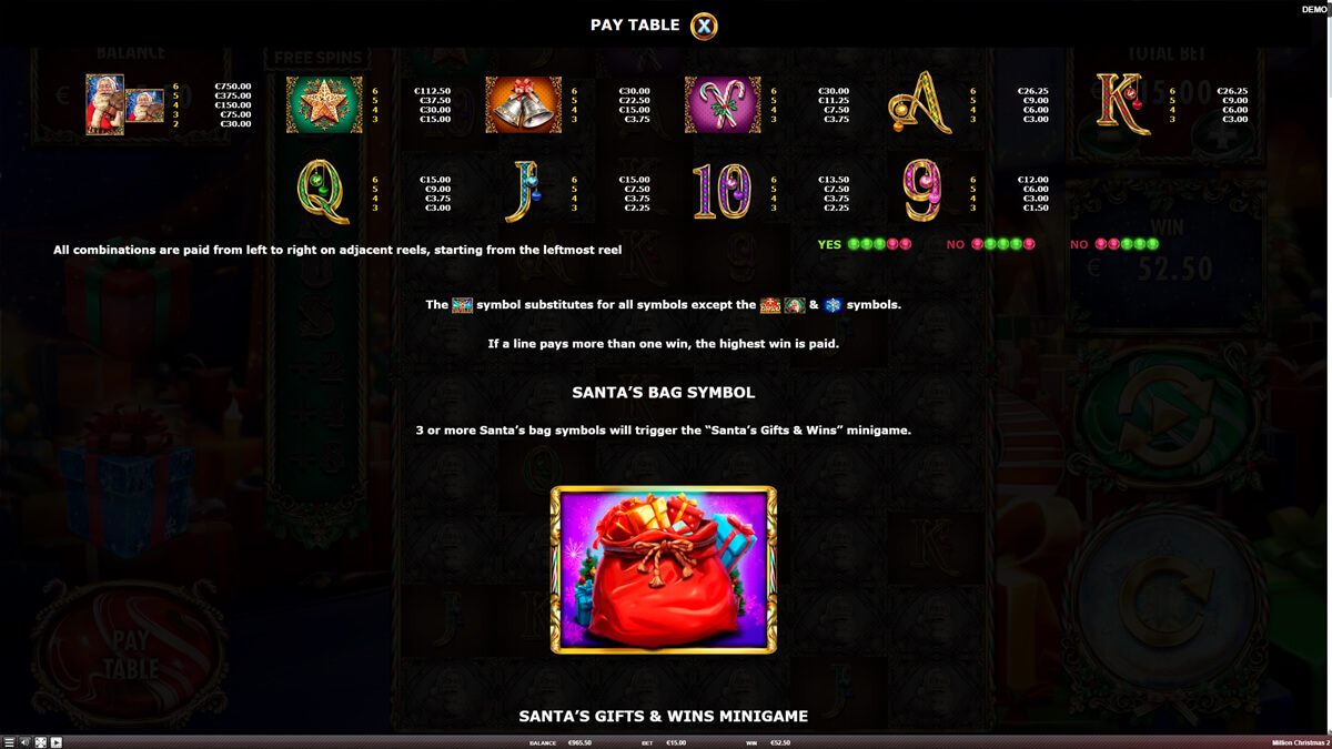 Million Christmas 2 Slot Pay Symbols & Their Values