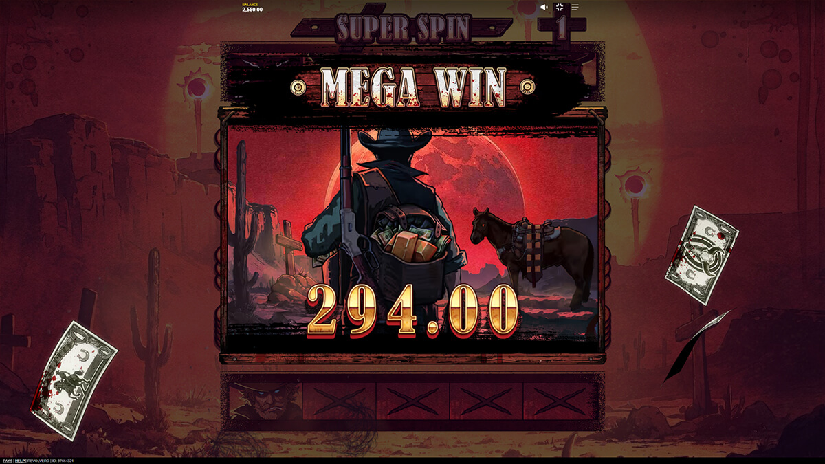 Visually, the slot delivers cinematic gunfight animations, Gunslinger characters, and classic western iconography such as hats and horseshoes. The gameplay experience is defined by the Showdown mechanic, which drops stacked Wilds onto the reels, often carrying multipliers that can escalate rapidly. Free Spins and Super Free Spins enhance this behavior further through sticky Wilds and guaranteed feature triggers, resulting in an intense, high risk gameplay style.