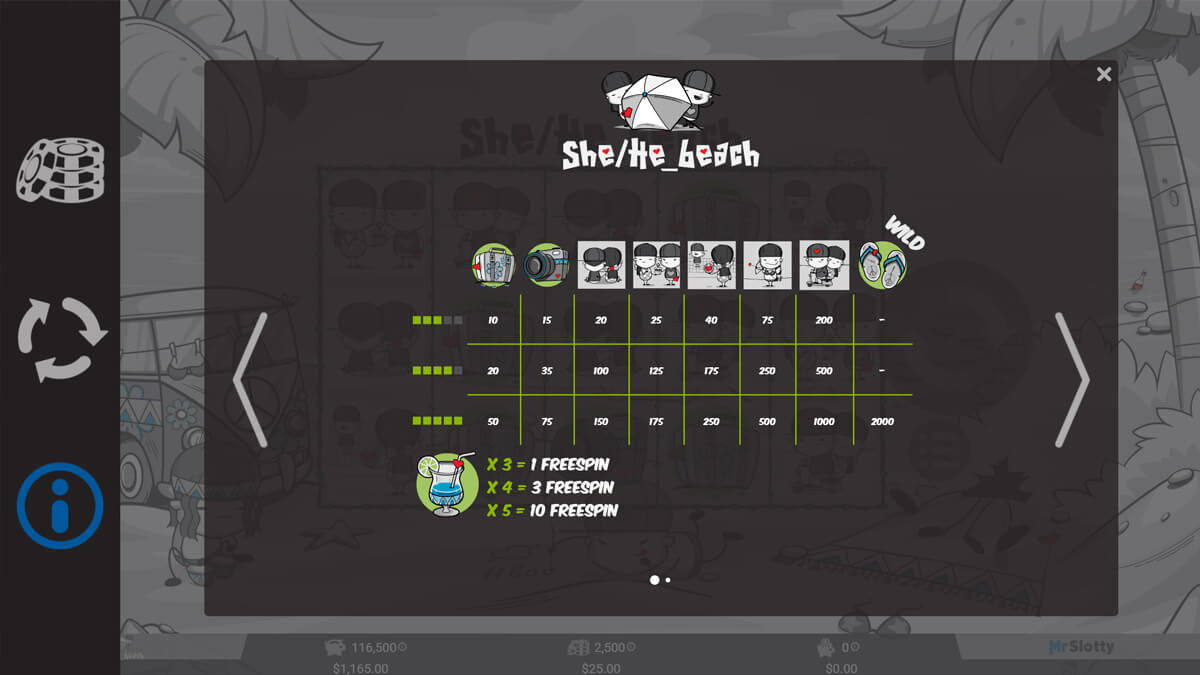 She/He Beach Slot Pay Symbols & Their Values
