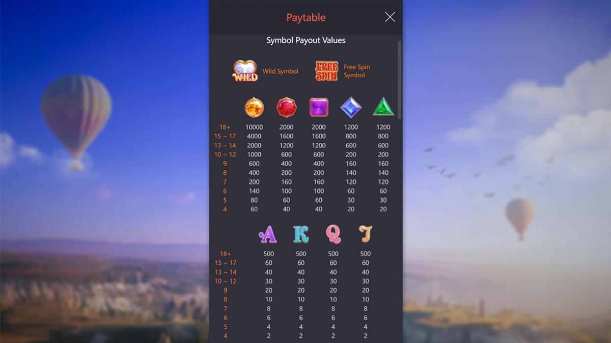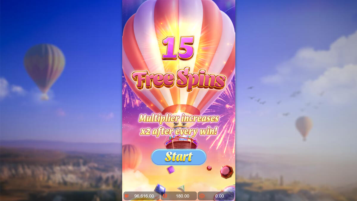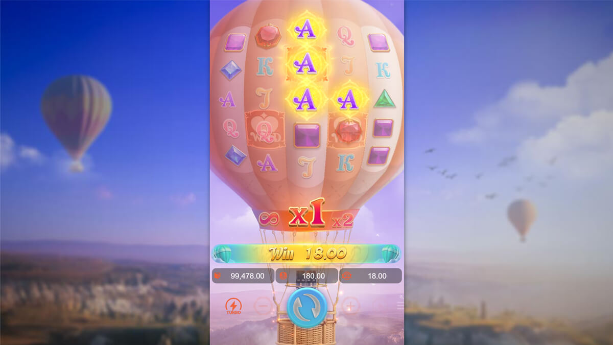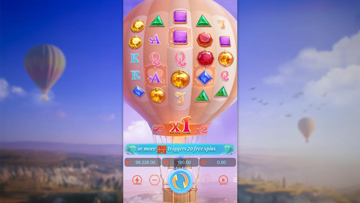 Visually, the slot presents an atmospheric setting inspired by hot-air balloon flight over a sky-blue horizon, aligning thematic calmness with rhythmic gameplay. Symbols consist of color-coded gemstones and stylized playing card icons, each rendered with PG Soft’s trademark luminosity and spatial clarity. Gameplay integrates several key mechanics: reactive wilds that persist across cascades, an uncapped climbing multiplier, and a Free Spins mode that escalates multiplier increments. The flow between regular and bonus rounds is continuous and well-calibrated, fostering both short-term engagement and long-term stability.
