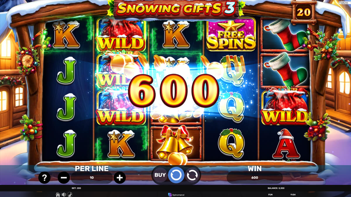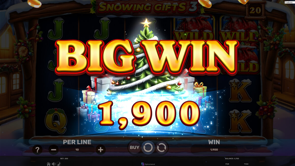 Spinomenal often employs layered modular mathematics combining re spin mechanics, stacked modifiers, and free spin variability. Their seasonal releases follow a trend of multi stage feature sequences where volatility spikes emerge through overlapping modifiers. Snowing Gifts 3 fits within this model, using expanding wilds and random modifiers to create fluctuating reward cycles while ensuring a stable return floor through consistent mid tier symbol mapping. The game follows their design philosophy of combining accessibility with feature driven volatility.