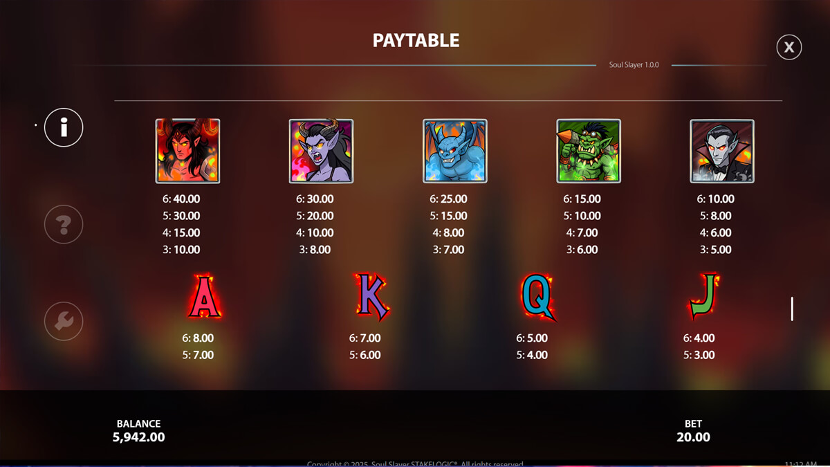 StakeLogic continues its tendency to merge thematic animation heavy designs with math models oriented around controlled high volatility. Their modern titles frequently employ transformation mechanics rather than cluster removal or reel expansions, leaning into signature systems such as multiplier wilds, buy features, and feature centric payout curves. Soul Slayer fits this profile closely, using symbol transformation and progressive feature states to generate volatility spikes while keeping the fundamental line structure simple. This approach creates accessibility while still delivering statistical intensity at key intervals.