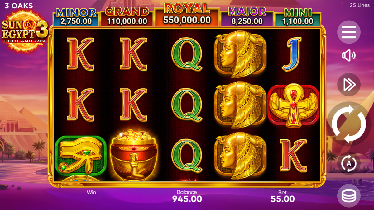 3 Oaks consistently applies a progression based design philosophy, favoring familiar frameworks enhanced through payout scaling and bonus layering. In Sun of Egypt 3, this approach is evident through the expansion of jackpot tiers and the introduction of the Super Bonus, which functions as a volatility accelerator rather than a standalone mechanic. The provider continues to balance accessibility with long term reward potential, targeting players who value predictable structure paired with rare but meaningful payoff events.