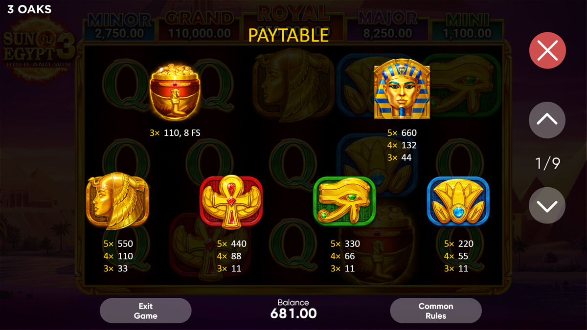 Sun of Egypt 3 Slot Pay Symbols & Their Values