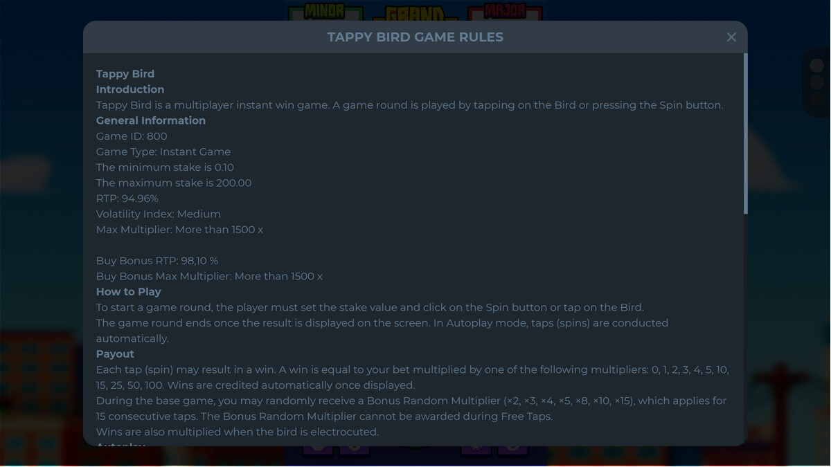 The RTP of Tappy Bird is 94.96 percent.