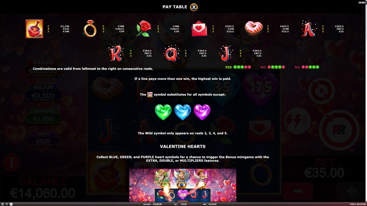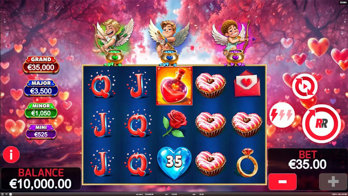 Triple Valentine is not positioned as a sequel, nor does it directly extend an existing Red Rake franchise. While the Hold and Win mechanic and jackpot structure are familiar across the provider’s catalog, the triple mini game format tied to cupid characters introduces a distinct structural identity.