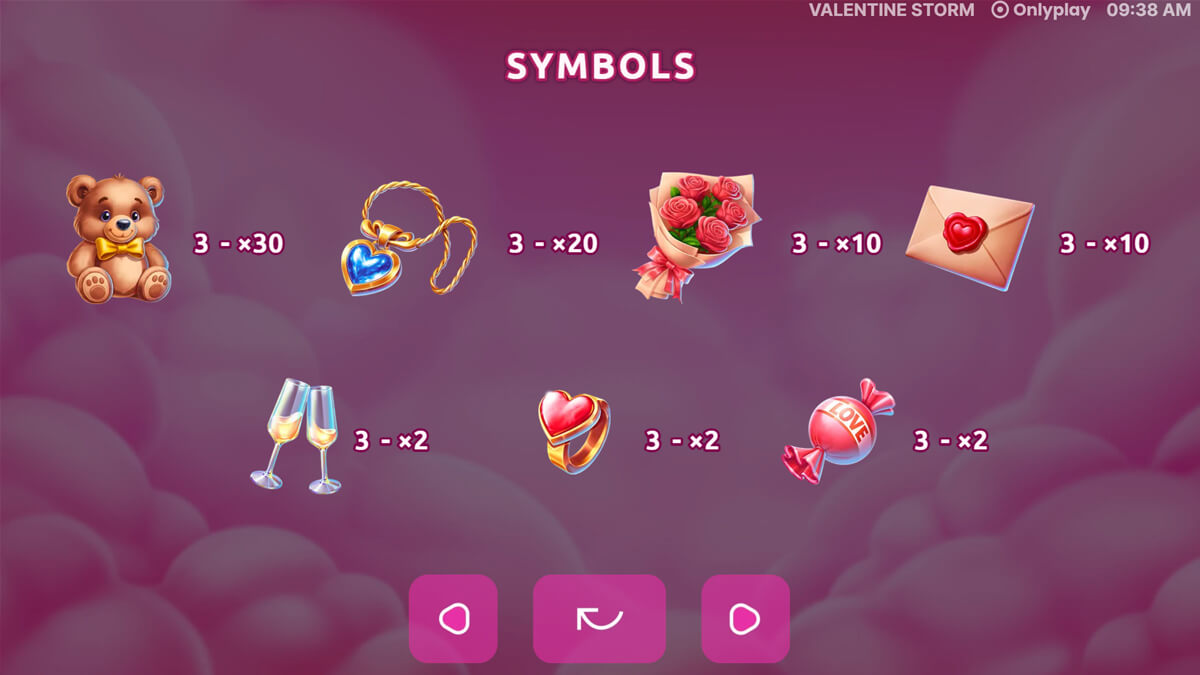 Valentine Storm Slot Pay Symbols & Their Values