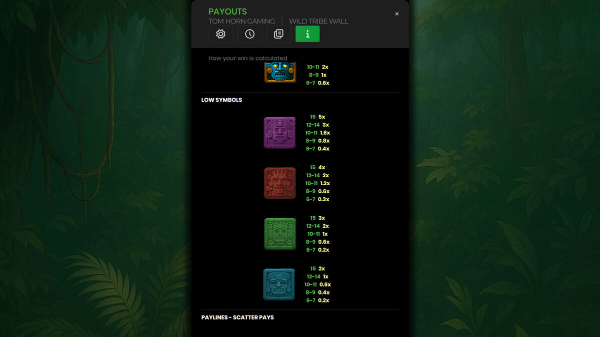 Tom Horn Gaming is known for structured volatility models that favor feature layering over raw payout spikes. In Wild Tribe Wall, this philosophy is evident through controlled multiplier growth and predictable cascade behavior. The provider typically targets extended session play, and this title continues that trend by rewarding persistence rather than short burst aggression.