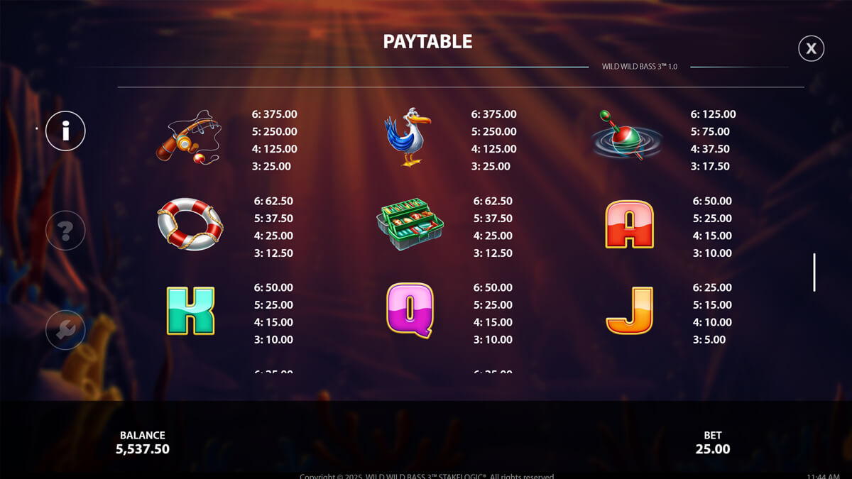 Wild Wild Bass 3 Slot Pay Symbols & Their Values