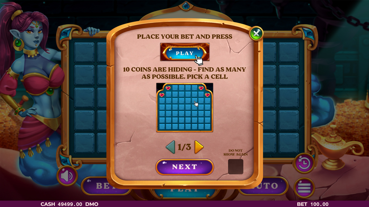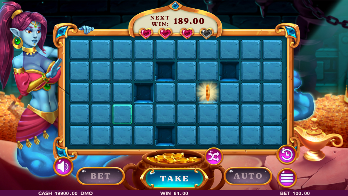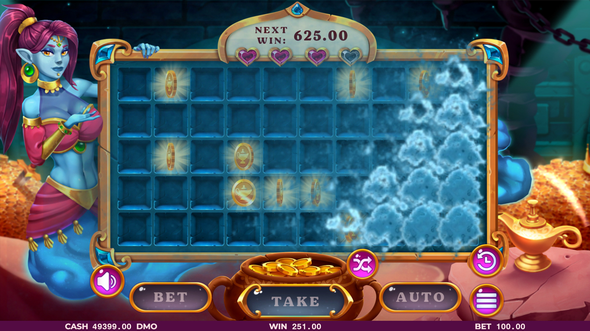 The game leverages illusion of control and escalation bias by allowing players to dictate progression depth. Each successful selection reinforces confidence, while the option to cash out introduces tension between security and ambition. The genie themed presentation softens loss perception, encouraging repeated engagement even after failed deep runs.