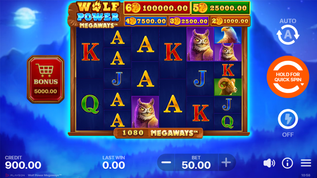 Wolf Power Megaways incorporates a mixture of vertical reel variability, stacked symbol logic, trigger dependent wild expansion and jackpot tiering. These systems interact to create a model where momentum depends heavily on either scatter distribution or sufficient Bonus and Power symbol density to force entry into one of the major features.