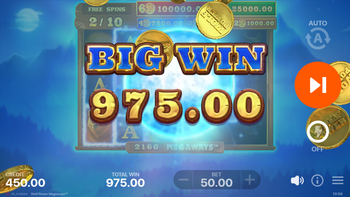 In terms of presentation, the visuals follow the same blue toned environment as previous Wolf Power titles, while symbols include owls, eagles, bears and wolves alongside coin symbols, bonus icons and Power symbols. The game’s two primary features remain the free spins round with expanding wilds and the Hold and Win system enhanced by Booster symbols. Without cascades, the gameplay skews toward discrete event windows rather than continuous momentum, causing the free spins and respins rounds to function as concentrated reward cycles.