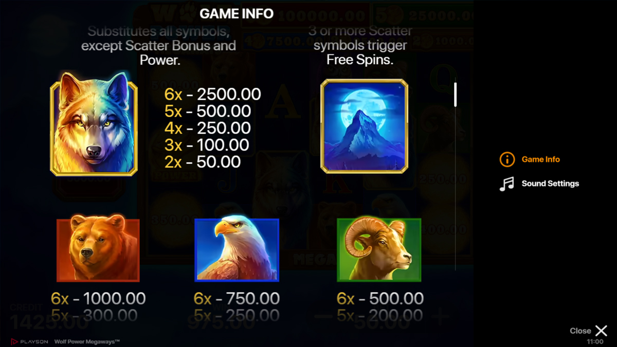 | Wild Symbols | High value wolf wild substitutes and pays premium rates |